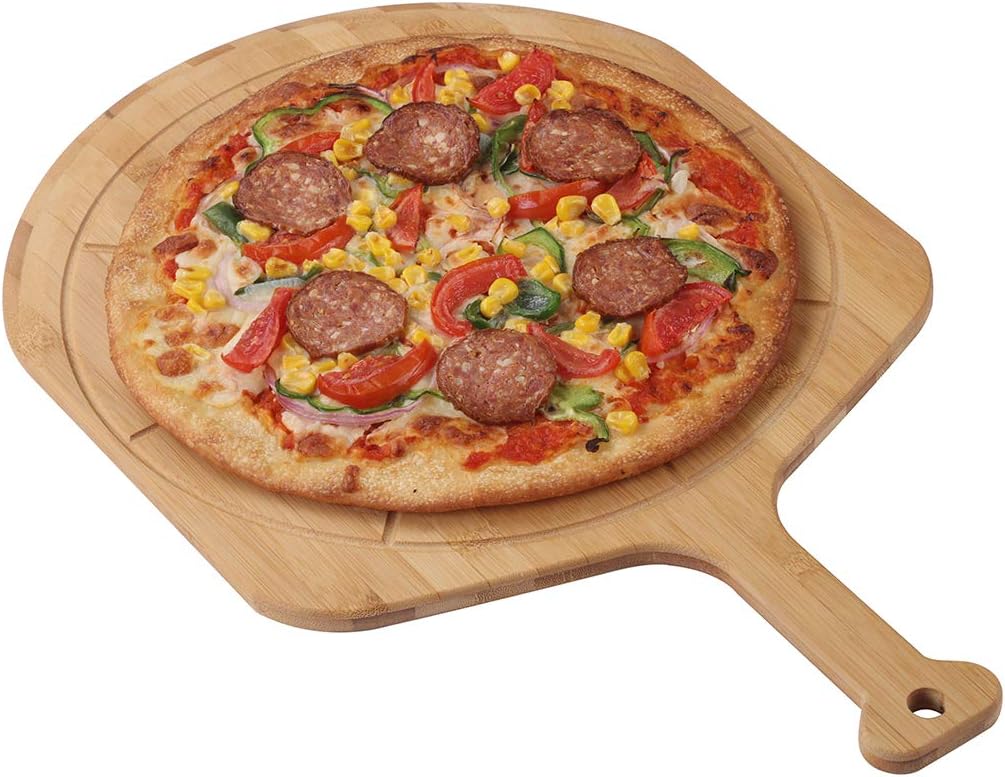 Fiery Chef Bamboo Pizza Peel - Pizza Paddle for Homemade Pizza and Bread Baking, Pizza Cutting Board with 8 Grooves, 19.7 Inch x 12.6 Inch