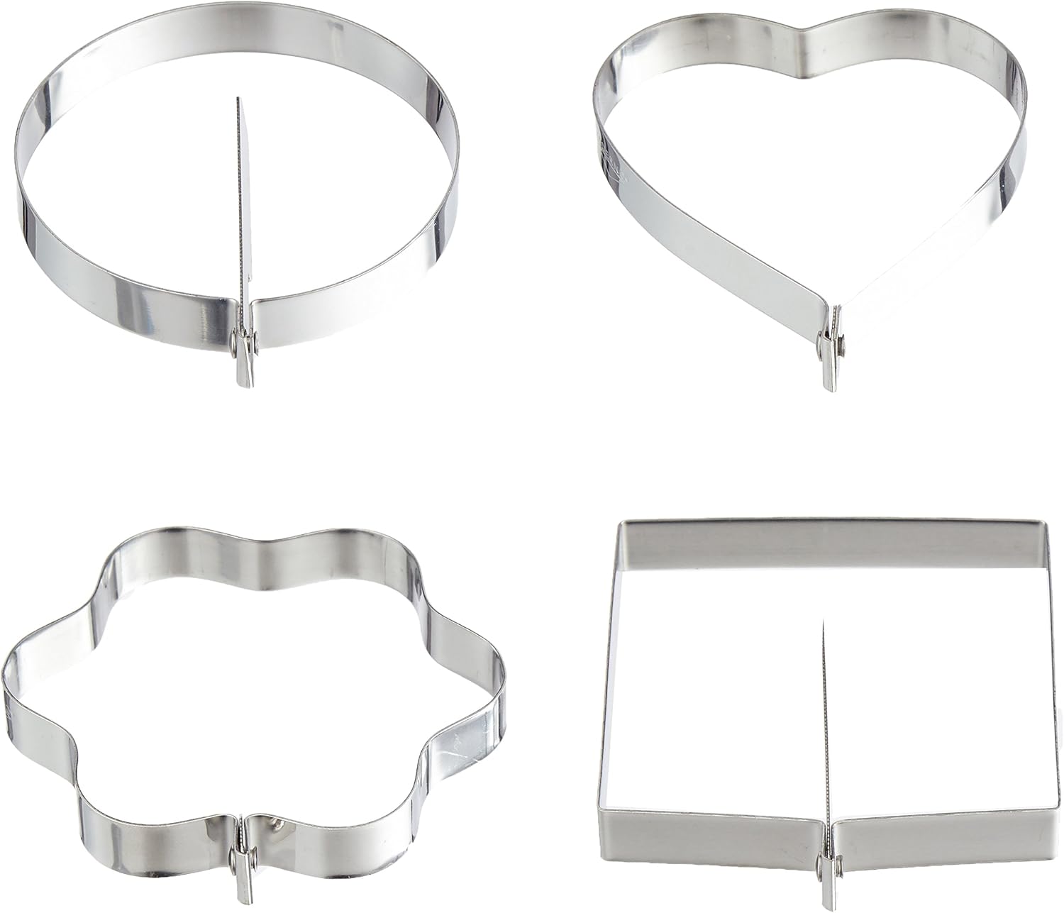 This 4 diameter by 1/2 high set of four egg rings is made of stainless-steel. With its convenient handle, it is ideal for shaping an egg while being friend or poached. It is also great for making perfect pancakes. .